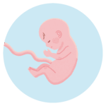 臍帯とはへその緒のことで、へその緒が赤ちゃんの首やからだに巻き付いている状態を臍帯巻絡といいます。赤ちゃんの移動によって起こる一般的な現象で、4~5人に1人にみられます。首にゆるく1回巻いている状態が一番多く、そのままの状態で経腟出産が行われ、大きなトラブルになることはあまりありません。
